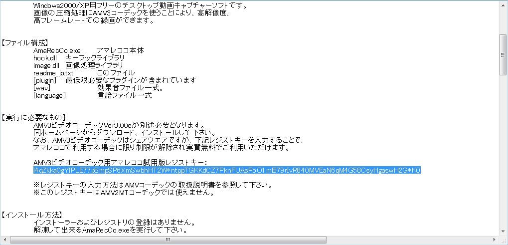 Amareccoをダウンロード後、 readme_jp.txt を開く