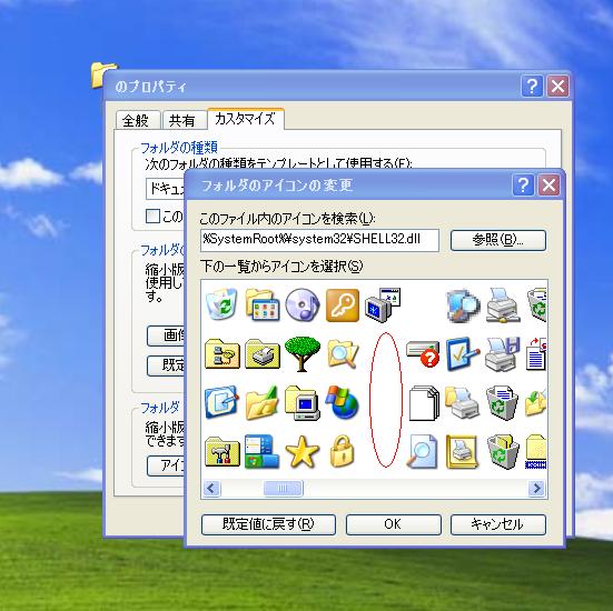 右クリック→プロパティ→カスタマイズ→アイコンの変更