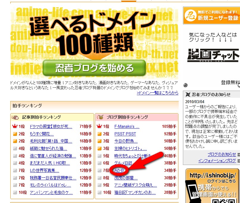 NINJAブログのTOPページを見てもらえればわかるが、その拍手ボタンの数でランキングができたり、なかなかマネッコとして頑張っているようだ。